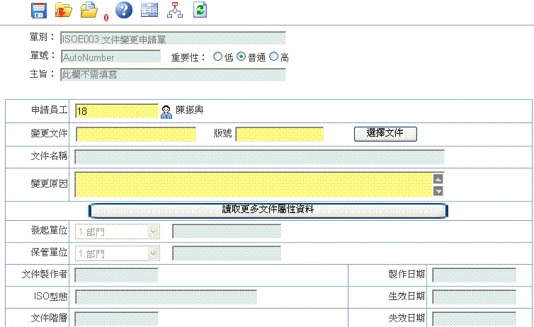 首 頁 --> ISO 電子表單清單 --> 文件變更申請單