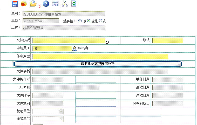 首 頁 --> ISO 電子表單清單 --> 文件作廢申請單