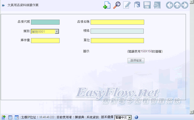 首 頁 --> OAS辦公室自動化 --> OAS表單異動資料維護作業 --> 文具用品資料維護作業