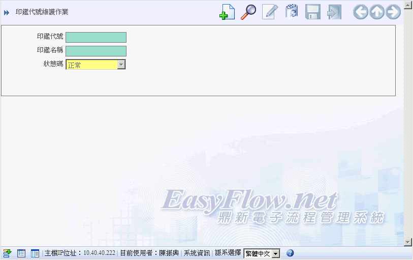 首 頁 --> OAS辦公室自動化 --> OAS表單異動資料維護作業 --> 印鑑代號維護作業