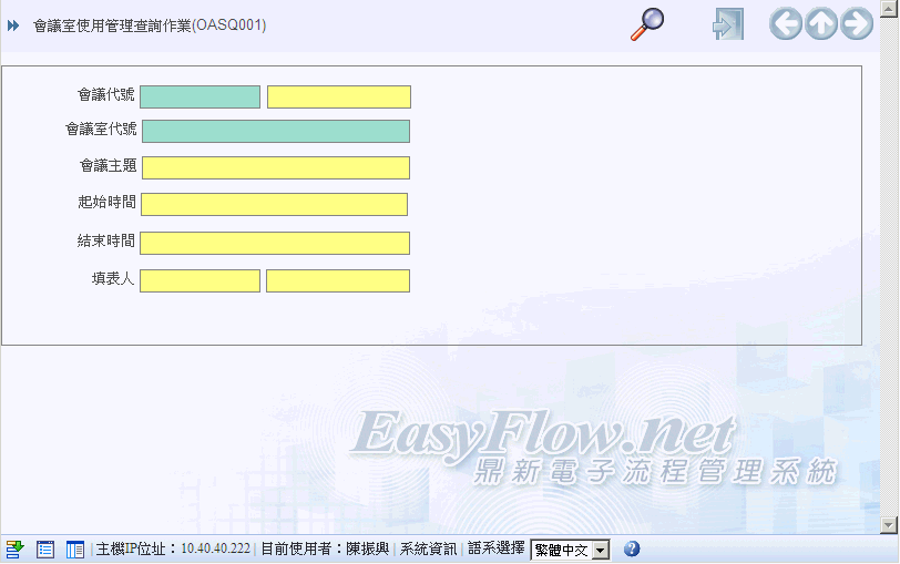 首 頁 --> OAS辦公室自動化 --> OAS查詢作業 --> 會議室使用管理查詢作業