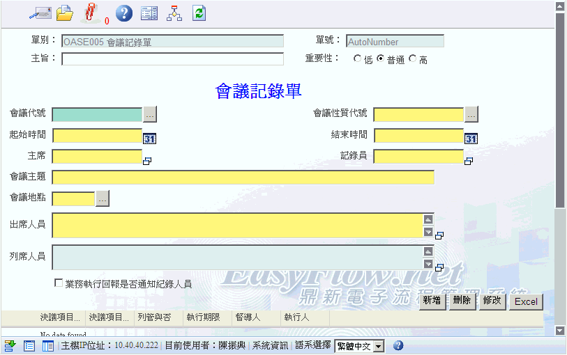 首 頁 --> OAS 電子表單清單 --> 會議記錄單
