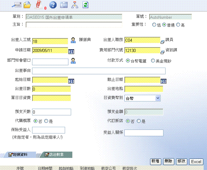 • 提供所有人員提出國外出差的申請.