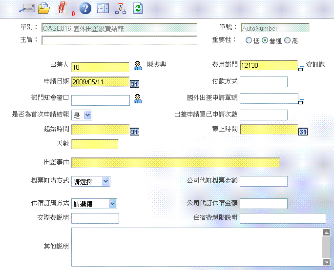 首 頁 --> OAS 電子表單清單 --> 國外出差旅費結報