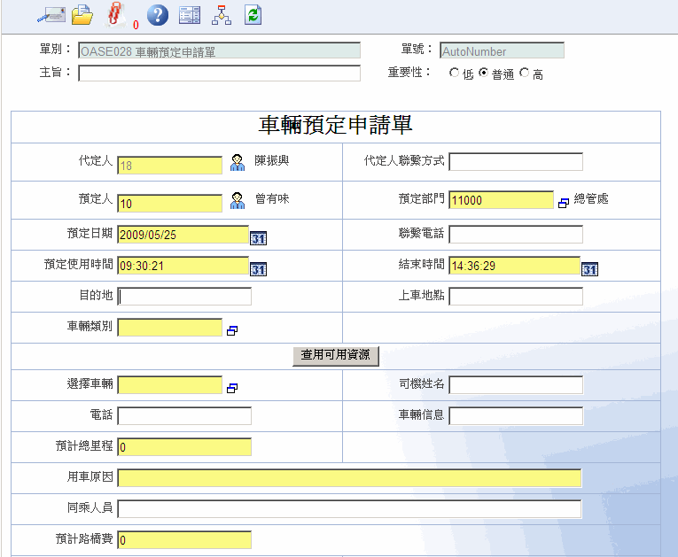 首頁 --> OAS電子錶單清單 --> 車輛預定申請單