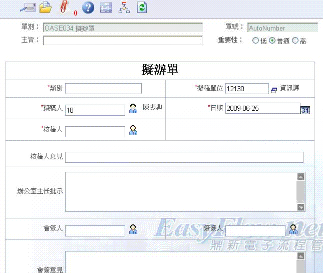 首頁 --> OAS電子錶單清單 --> 擬辦單