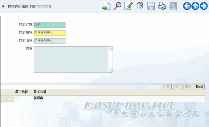 2. 當系統上線之前,或者是設計新表單之前,您可以透過本維護作業,建立此表單所對應的特殊群組。當然,您也可以隨時修改各群組的相關人員。一般而言,一個群組通常不只一個人。