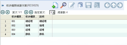 1. 進入核決權限代號維護作業(RESI029)