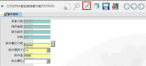 • 如此則在上面的表格中會出現一筆記錄(如下圖),按下圖示進入設定條件式。