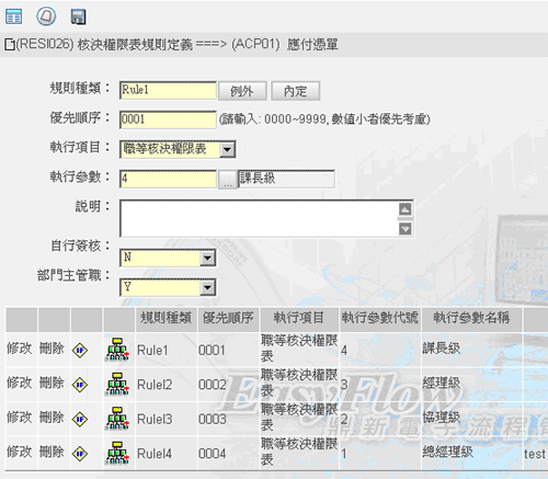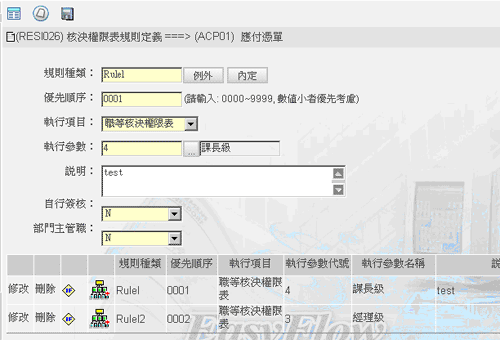 核決權限表規則定義(RESI026)