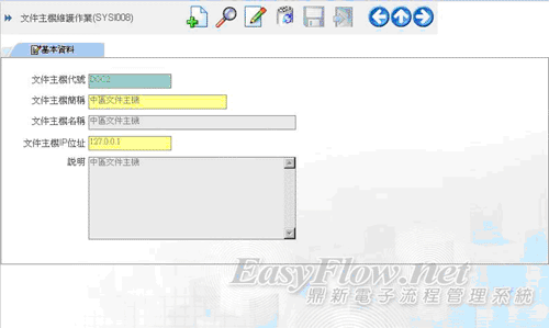 2. 當系統上線之前,或者是新增文件主機時,您可以透過本維護程式,建立文件主機之資料。