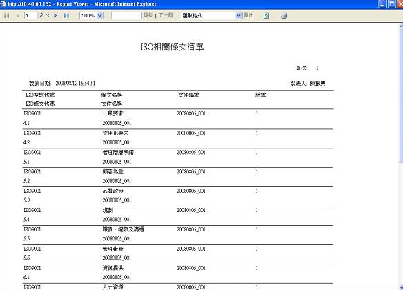 ISO相關條文清單報表